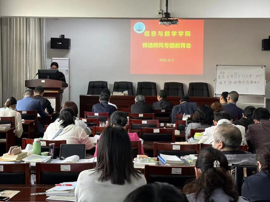 11月3日下午,学院在8教406会议室举行“以案为鉴、恪守师德”师德师风警示教育。党委书记高迎斌主持,全体教职工参加。