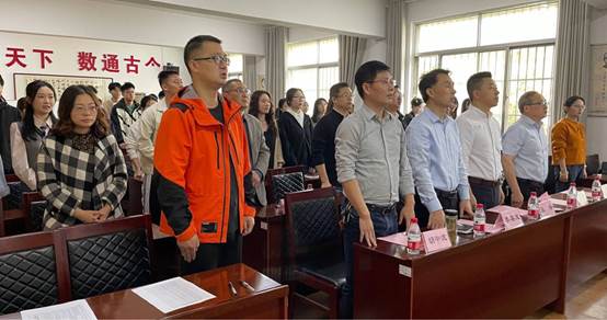 会议伊始,钟赛介绍参会嘉宾,并对2023级新生的到来表示欢迎。随后全体与会成员起立奏唱国歌,“起来,不愿做奴隶的人们……”,激昂的国歌结束也代表着研一学子们一段新的旅程就此开始。